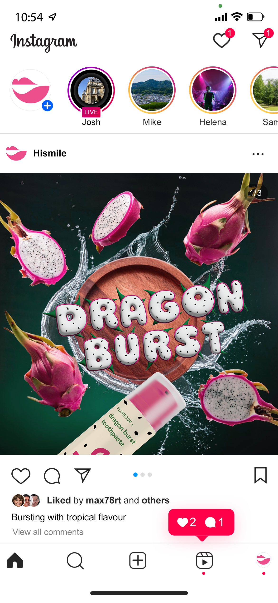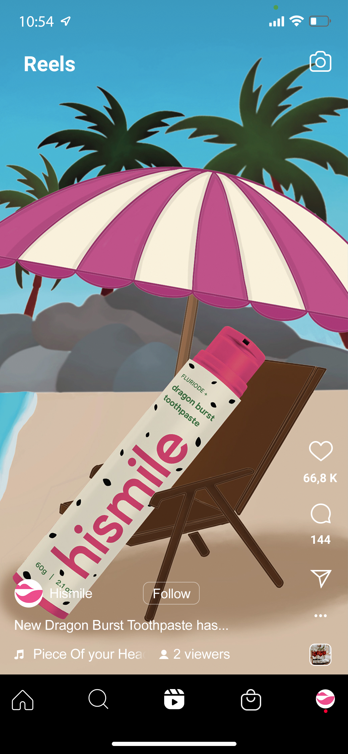 For this work-integrated project, we collaborated with Hismile to create a new toothpaste flavour and a full marketing rollout, including packaging, a billboard, magazine ad, email promo, Instagram assets and an Instagram reel.